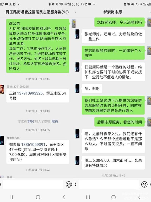 动员居民齐参与 守望相助显真情。舜玉路街道社工站通过招募居民志愿者的形式,为社区疫情防控助力。招募活动得到了部分居民的踊跃报名,社工根据居民的居住地对接社区,进行科学合理的志愿服务工作地点的分配工作。曾参加过5月份志愿者服务的郝老师表示,疫情当前,只要我有时间,只要社区需要,我就一定要为社区的疫情防控贡献一点力量。像他们一样的志愿者还有很多,虽然年龄身份不尽相同,却怀着同样的热忱,义无反顾投身“疫”线,用同一副热心肠传递守望相助的温暖,诠释着众志成城的力量。