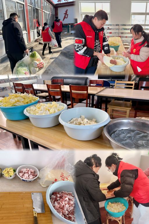 一大早,志愿者们带着猪肉、豆腐、白菜、粉皮等新鲜等食材来到宋上村农村幸福院。在村干部的号召和全力支持下,村民都主动赶过来帮忙。宋大爷带来盆和刀,李阿姨带来了毛巾,刘大爷带来了大锅……幸福院很快就被温暖的烟火气包围,逐渐热闹起来。
