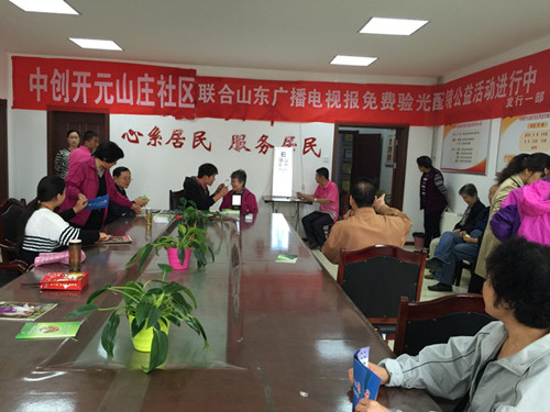 2015年10月15日,大爱之行—失能老人社区支持网络建设项目联合山东广播电视报举办免费验光配镜公益活动,项目组邀请部分失能老人及其家属前来参加,同时活动吸引了社区大量老年人。