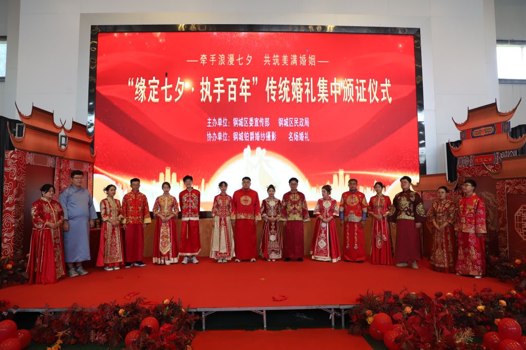 钢城社工协助民政局举办“缘定七夕 执手百年”传统婚礼活动