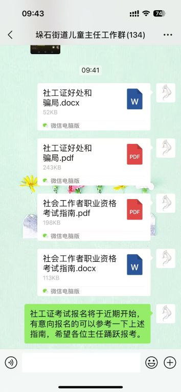 与此同时,社工们充分利用微信群的便捷性,及时发布考试信息、动员号召和答疑解惑,确保了信息的快速传播和有效覆盖。巧妙地将集市宣传与微信群动员相结合,通过多种形式广泛号召街道居民及各部门工作人员积极参与考试。