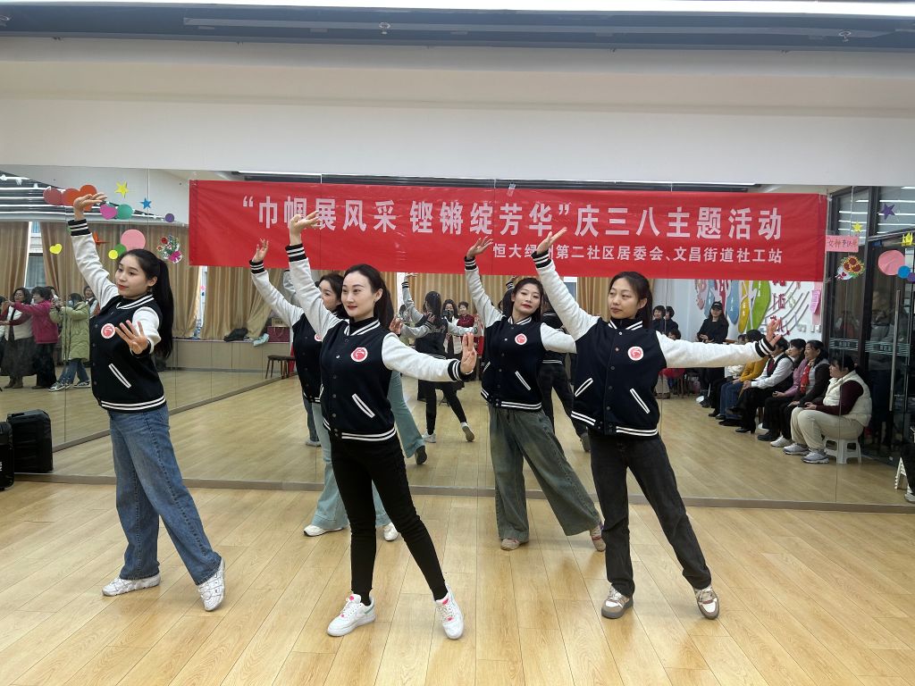 春风吹绿百花艳,巾帼映红半边天。为庆祝三八妇女节,活跃社区女性的文化生活,激励女同志弘扬“巾帼不让须眉”的精神,文昌街道社工站联合社区社会组织“舞悦时光”舞蹈队、乐享拍拍团、梦之舞艺术团3支队伍,链接鸽之舞艺术学校文化驿站开展“巾帼展风采,铿锵绽芳华”庆三八主题文艺汇演活动。