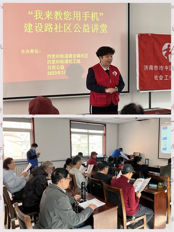 为方便老年人智能手机的使用,让其充分享受数字化带来的便利,丰富社区老年居民的业余生活,根据老年人的实际情况和需求,四里村街道社工站于3月9日上午联合建设路社区居委会,特邀齐鲁晚报贝壳公益组织开展了“智慧助老”智能手机培训学习小组。