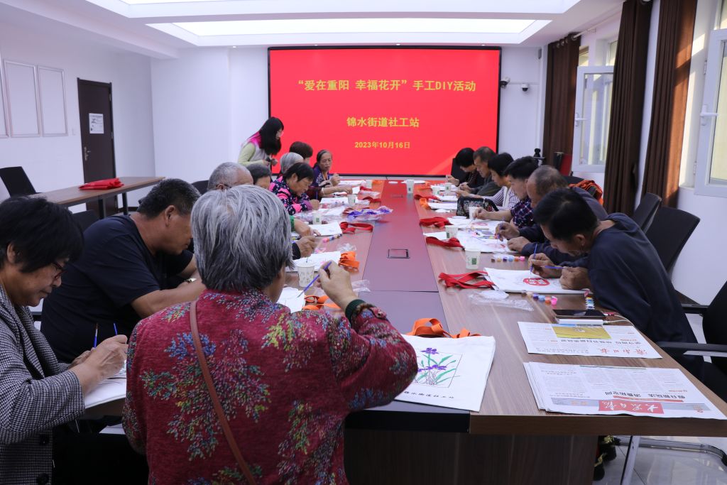制作香囊是一项传统的手工技艺,彩绘在古代被称为丹青,也是传统艺术。为了让老年人感受到节日的温暖,锦水街道社工站、孝直镇社工站、相继在辖区开展“爱在重阳 幸福花开”彩绘帆布包、“金菊染醉“艾”伴重阳”等手工制作活动,活动既丰富了老年人的文化生活,增进了邻里关系,也充分展现了老年人热爱生活、积极向上的精神风貌。