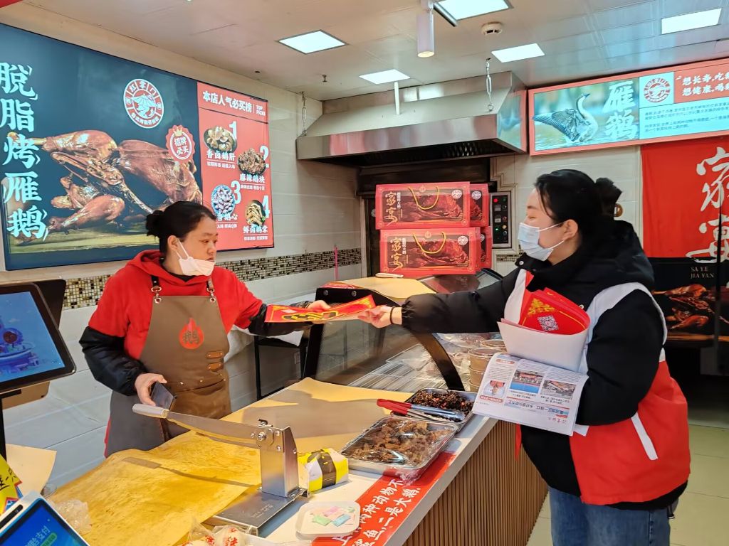 在活动中,社工兵分两路带领志愿者行走在辖区商铺,与商户进行亲切交谈,了解商铺经营状况、生活状况,向商户介绍社工站服务宗旨、运营形式,并将特制带有社工标志的福字、社工报纸送到商户手中,鼓励商户积极参与到社区公益行动之中,商户们纷纷表示,收到这份祝福让他们倍感温暖和支持,也激发了他们继续努力奋斗的信心。