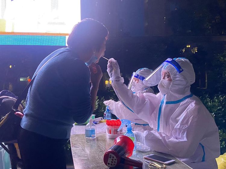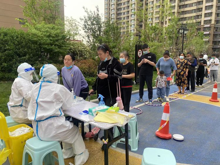 在全社区群众的配合下,整个采集检测过程有序进行,居民都很积极地配合医务人员进行检测。