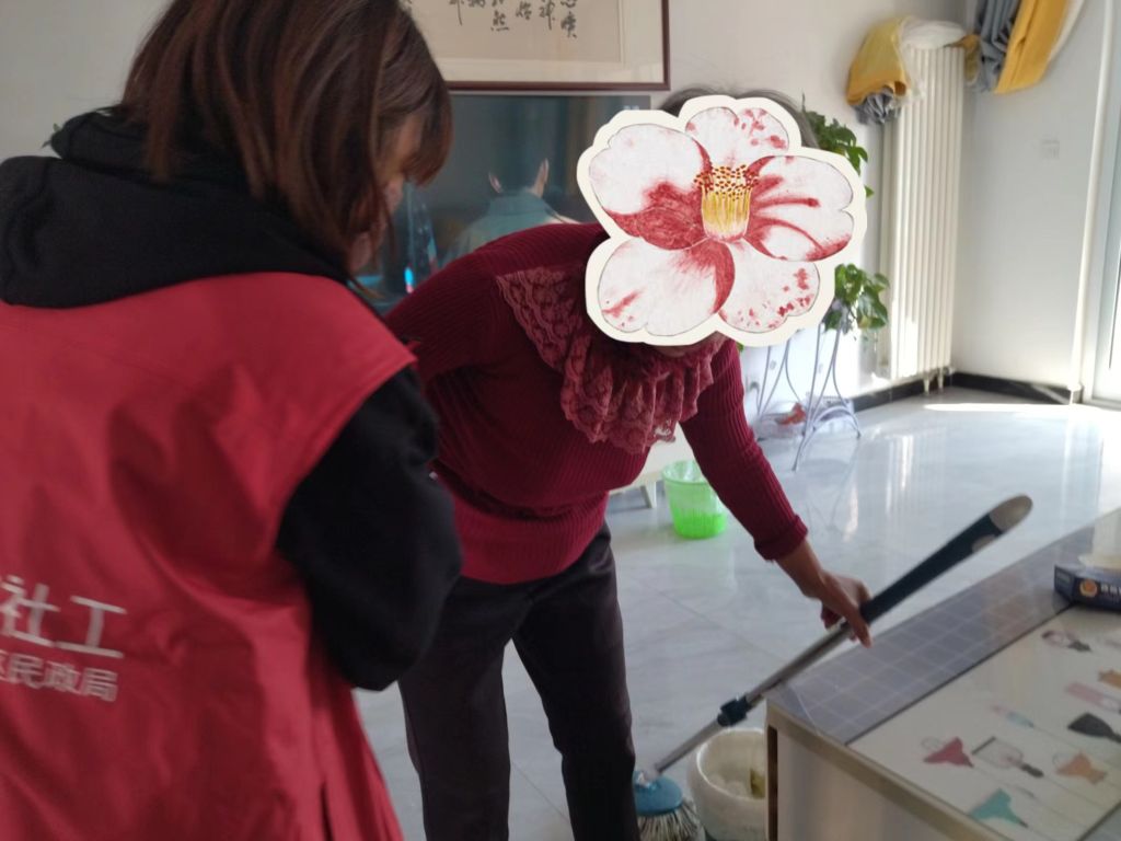 “赵姨,是我们,社工啊!”“门没关,快进来!”“最近怎么样,血压稳定吗?”“还可以,我一直吃拜新同,没有高,你叔今天精神头好,心情也不错刚出门,我坐着歇会儿,正好你来了给我量量血压,我愿让你给我量,我觉得你一量每次都正常都准!”赵阿姨一句玩笑话逗得大家哈哈笑,像这样的情形在社工的日常走访中时常出现。这不仅仅是简单地交谈,也是一种信任体现。赵阿姨是三级肢体残疾人的照护者,平时有高血压、高血脂,每次社工入户走访像是“查体”,赵阿姨会将这一时段的用药和血压值跟社工“汇报”,于此同时也会向社工描述最近老伴儿心情变化和出门锻炼次数,社工会把自己掌握的日常养生小常识和小食谱跟赵阿姨一起分享探讨。“你叔叔最近心情不错没发脾气,尽量让他多锻炼不能在家偷懒!你帮我问问能不能给他申请个带座位有筐子的小车,这样他走累了可以歇歇,要不然一累了怕摔倒,摔倒以后心情就不好了。”“冬天天气冷,出门让叔带个帽子,别感冒头疼。还得注意少抽烟!”交谈讨论过程也了解到照护者及服务对象的需要和近期生活遇到的难题,在明确需要之后社工根据实际工作情况链接资源向有关部门咨询指导意见,并及时反馈。在充分了解残疾人有关政策的基础上,为遇到困难的残疾人寻找各种政策支持,并通过政府部门、有关机构、社区、其他组织,充分动员各方资源解决问题。问题有效解决的同时也缓解了照护者和服务对象的精神压力,在每一次交谈中服务对象及照护者分享感受、发泄情绪,社工给予心理支持、情绪支持和积极回应,看似简短的问候,背后这些情绪问题的动荡起伏,是健康家庭很难体会到的。