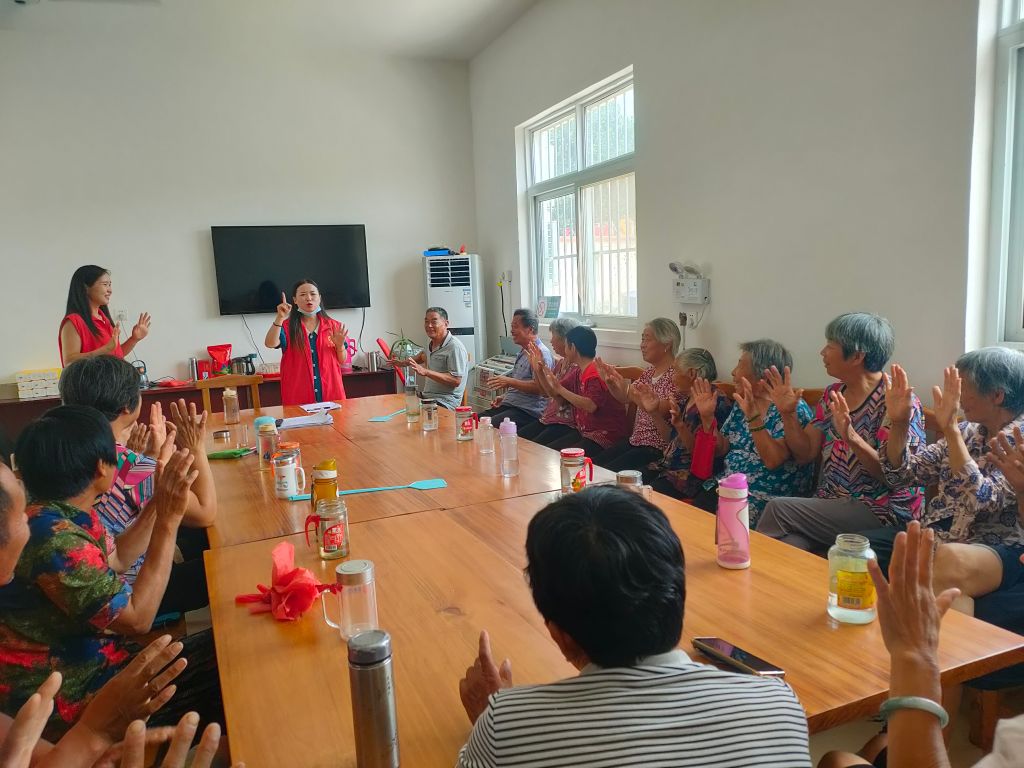 活动开始,站长苏凤华带领老人们玩“击鼓传花”的游戏,红绸花传到谁手里谁就做自我介绍,活跃气氛的同时也调动了老人们参与活动的积极性。活动过程中,充分考虑到老年人的兴趣及特点,带领老人做手指操,讲课方式生动有趣,内容贴近老年人的生活,又契合老年人的需求;并以日常生活中的事件为例,通俗易懂。