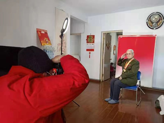 拍摄期间,社工和志愿者与拍照老兵们进行了拍摄前的沟通,这些老兵们都已经年龄偏大,那漫长岁月里有些人和事,有些老人已经记不清了,但他们忘不掉部队番号和战友的名字;也有的老人思维依旧清晰,随着他们的讲述,烽烟四起、浴血战场的画面仿佛在眼前。志愿者们还为出行不便的老兵进行上门拍照服务,受到退伍老兵们的欢迎。拍摄活动结束后,还为参与拍摄的老兵们赠送十寸照片及相框,临走时为老兵们送上新年的祝福。