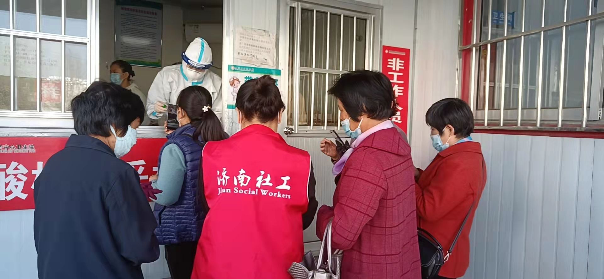 一份份冒着热气的餐食,正体现了疫情下的城市温度。提供爱心助餐是幸福食堂的重要服务内容,为落实疫情防控要求,里辛社工站于2022年3月7日协助里辛卫生院对里辛辖区内幸福食堂工作人员进行了核酸检测。一大早,里辛社工来到卫生院核酸检测处等待幸福食堂工作人员,社工积极帮助她们扫码登记,认真核对核酸检测信息,对未及时前来核酸检测的工作人员电话联系督促尽快应检。核酸检测完成后,里辛社工叮嘱工作人员对工作场所勤消毒,送餐过程中戴好口罩注意个人防护。历时2个小时对辖区内29个幸福食堂、1个综合养老服务中心共计41人完成了核酸检测任务。