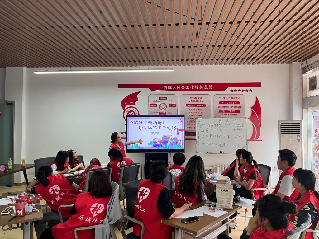 为进一步提高历城社工的工作总结能力,做好专业服务,讲好社工故事,6月7日下午,济南市历城区社工总站开展了“如何做好工作汇报”社工专项培训活动。此次活动以趣味知识问答和授课相结合的形式进行。