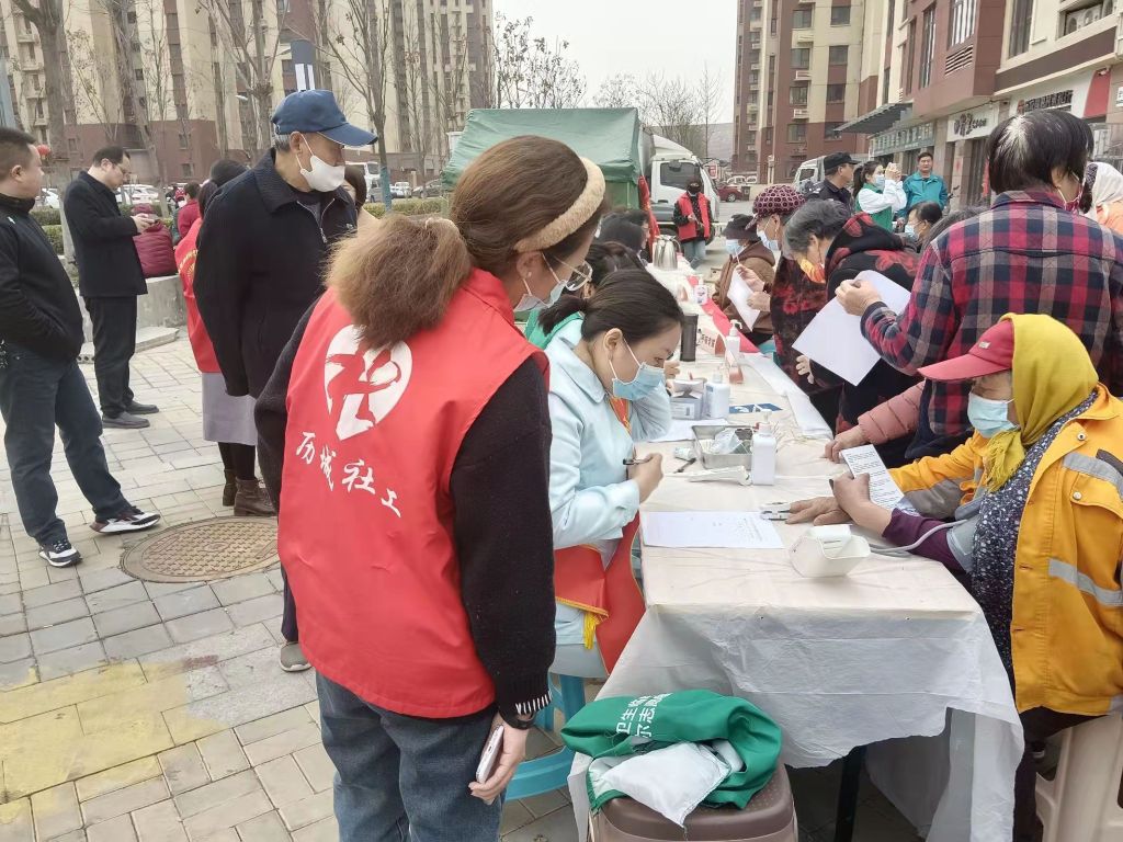 本次活动特邀山东省公共卫生临床中心医护人员前来出诊,结合实际需求,义诊项目包括:血氧、血糖、血压测量、心电检测等检查项目,出诊医生为前来参加的老年人提供面对面、零距离的义诊和咨询服务。现场医务人员也通过检测结果询问老年人详细的身体状况、对于老人的用药等等给出建议,社工在旁用纸记下,并叮嘱老人牢记医生的嘱托,纸条可交由家中子女,由子女督促老年人对于药品的服用,帮助老人避免产生药物依赖等副作用。在此期间社工、志愿者帮助老人进行信息登记、搀扶行动不便的老人做好各项检查并记录。检查过后,社工提醒老人要养成良好习惯,询问前来参加义诊的老年人“阳康”前后身体明显的变化,并协助他们填写问卷,对于身体明显不适变化的老年人社工留下其个人信息,表示会与他们保持联系。最后,社工告诉老人要定期做检查,努力做到疾病早发现、早治疗、早康复。