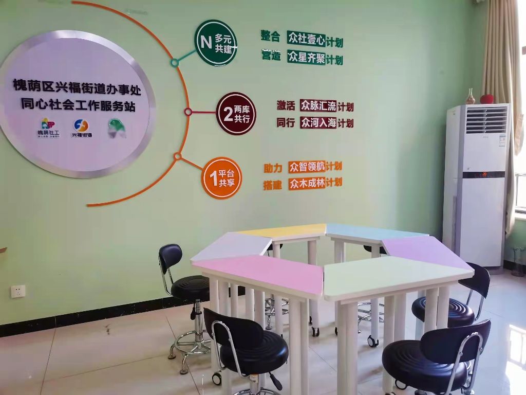 “可以告诉我,你今天的心情是什么颜色吗?”,为提升服务对象的自我认知,正确认识服务对象的问题、帮助服务对象进行自我探索,兴福街道社会工作服务站设计了“马卡龙时间”服务板块,以“色彩心理效应”为依据,使每一位进入服务板块的居民感受到情绪的魅力。