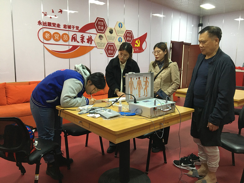 本次活动针对辖区内老年人常见的“颈肩腰腿疼、腰椎间盘突出症”等慢性骨科疾病,利用传统中医脉冲针灸的康复理疗方式,为老年人进行公益服务。活动期间,前来咨询、问诊的居民络绎不绝。山东中医药大学的公益志愿者通过耐心细致的问诊、把脉,与前来问诊的居民进行了详细的沟通。随后,根据老人们所患有的健康问题,逐一为居民进行推拿按摩、针灸理疗等治疗。在做好治疗服务的同时,志愿者们也详细解答居民关于关节炎、腰腿疼痛等常见病的养护问题,并叮嘱情况复杂的居民进行进一步的检查和治疗。