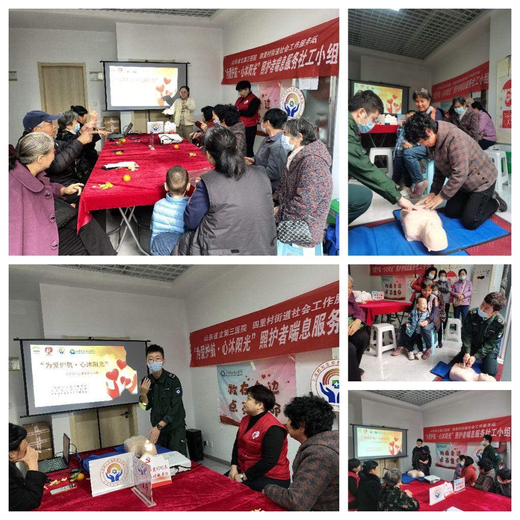 之后,省立三院急救中心的两位急救员带来了“救在身边 点亮生命”的急救课程,为组员们讲解了海姆立克急救法和心肺复苏两项急救内容,并进行现场技术指导,组员们纷纷亲自上阵练习,不仅反复学习动作要领,而且记住了关键步骤,真正掌握了心肺复苏的操作方法和流程。为以后成为合格的社区健康志愿者打下了基础。
