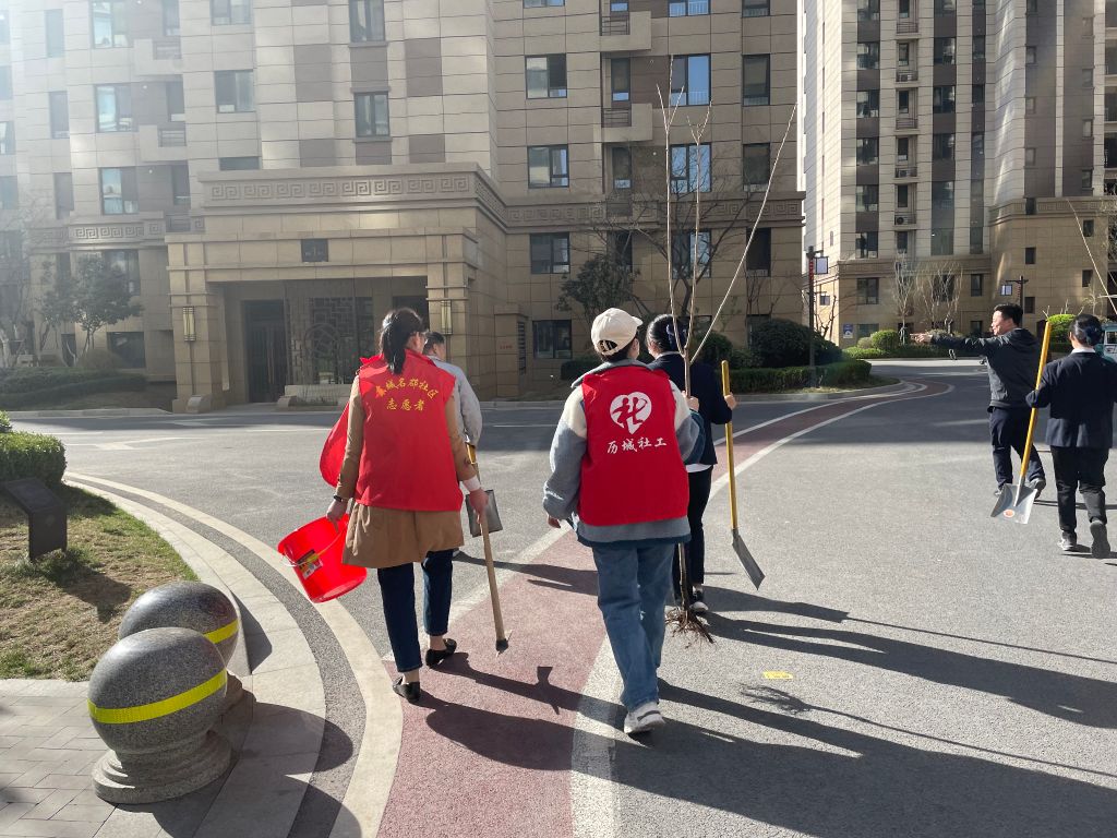 和风吹拂三月暖,正是播绿好时节。一大早社工和志愿者们来到了活动现场,给前来参加活动的朋友们分发工具和树苗。起先社工带头做示范,给大家讲解注意事项,并对志愿者朋友讲述本次植树的意义,并建议种完之后,每周都过来看看自己亲手栽种的“绿色生命”。之后大家手持工具,在各自的区域面前干起活来,一棵棵树苗的栽下,象征着一份份绿色的希望。在志愿者和社工行动下,不少居民纷纷加入到护绿养绿的行列中来,一起享受劳动的快乐,不仅让社区环境更加绿色,而且为乐居家园环境贡献了自己的力量。