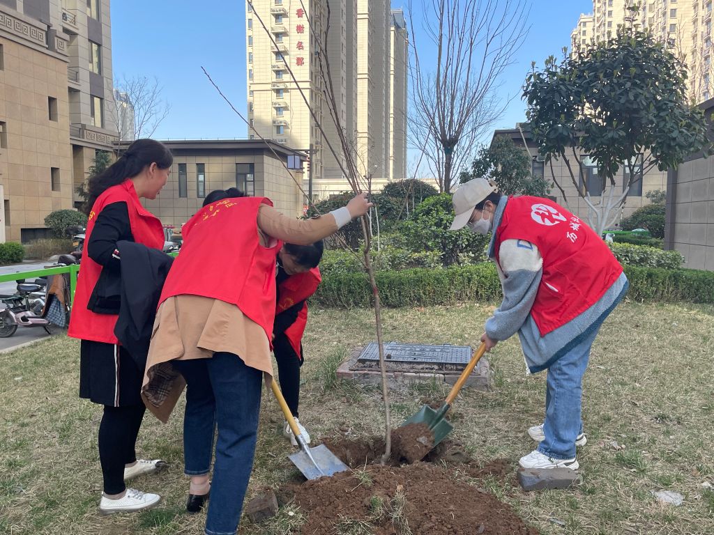 春天来临,一年一度的植树节也随着春天的脚步走来。为进一步美化社区环境,学习绿色知识,亲近自然,共建绿色环保社区。3月10日上午,郭店街道社工站在东城名郡社区内开展“绿色家园,爱心同行”植树活动。