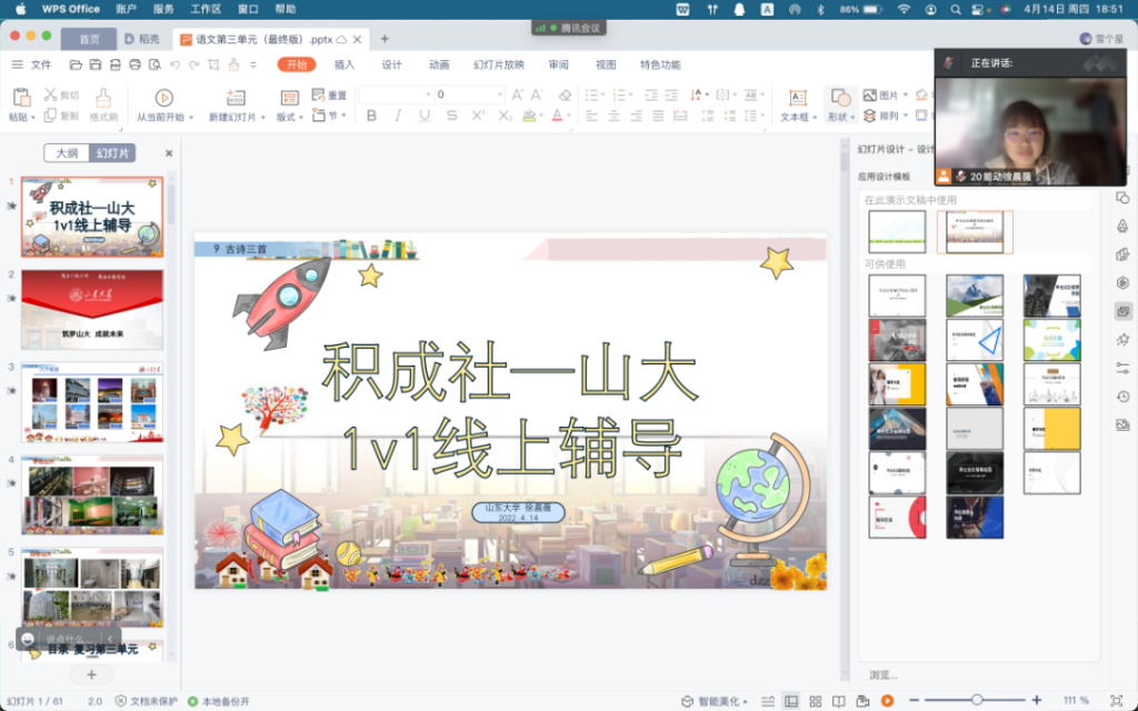 4月,济南的疫情突然反弹,让大家都放慢了生活的脚步。大学生们纷纷开始网课学习,疫情让原本充实的生活突然丧失了活力。于是,我利用课余时间,报名参加了济南市新市民城市融入支持服务项目和山东大学能动学院实践中心联合举办的“童”学陪伴计划,为社区的随迁儿童进行线上课业辅导,让因疫情停课的小学生们不停学,同时缓解家长们的压力。