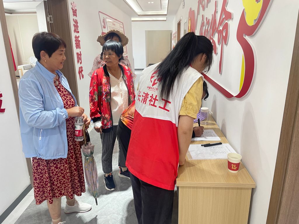 活动现场井然有序,志愿者给居民测量血压、测量耳豆,社工配合志愿者针对地方常见病、夏季易发疾病预防、慢性呼吸疾病科普做了讲解,并耐心地与前来检查和咨询的居民讲解健康保健知识。知识小课堂结束后,志愿者逐一为在场居民提供健康和指导,“阿姨,您的血压有点偏高,在饮食上一定要注意低油低盐,平时也要多加锻炼身体”,志愿者叮嘱居民要合理膳食和均衡营养、要多参加锻炼、定期体检,养成健康的生活方式。