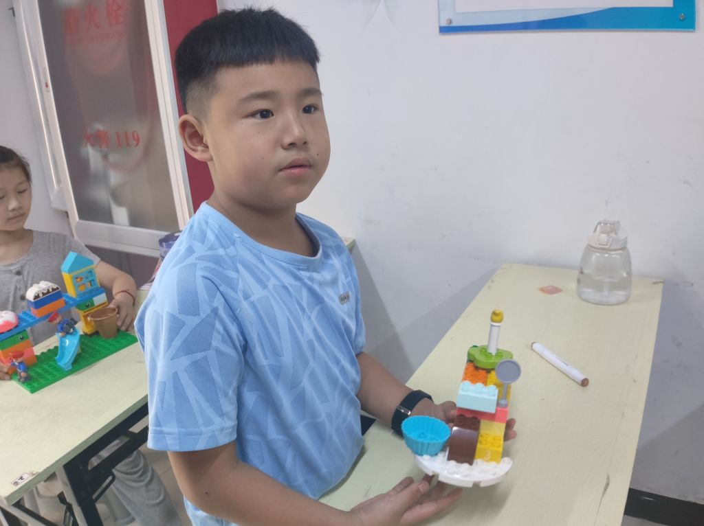 为提升活动趣味性、组员参与度,社工通过分发乐高积木,以“消防安全”为主题限时规定组员完成消防设施积木拼搭,并鼓励组员一一讲述拼搭内容,组员奇思构想、现场一片欢声笑语。