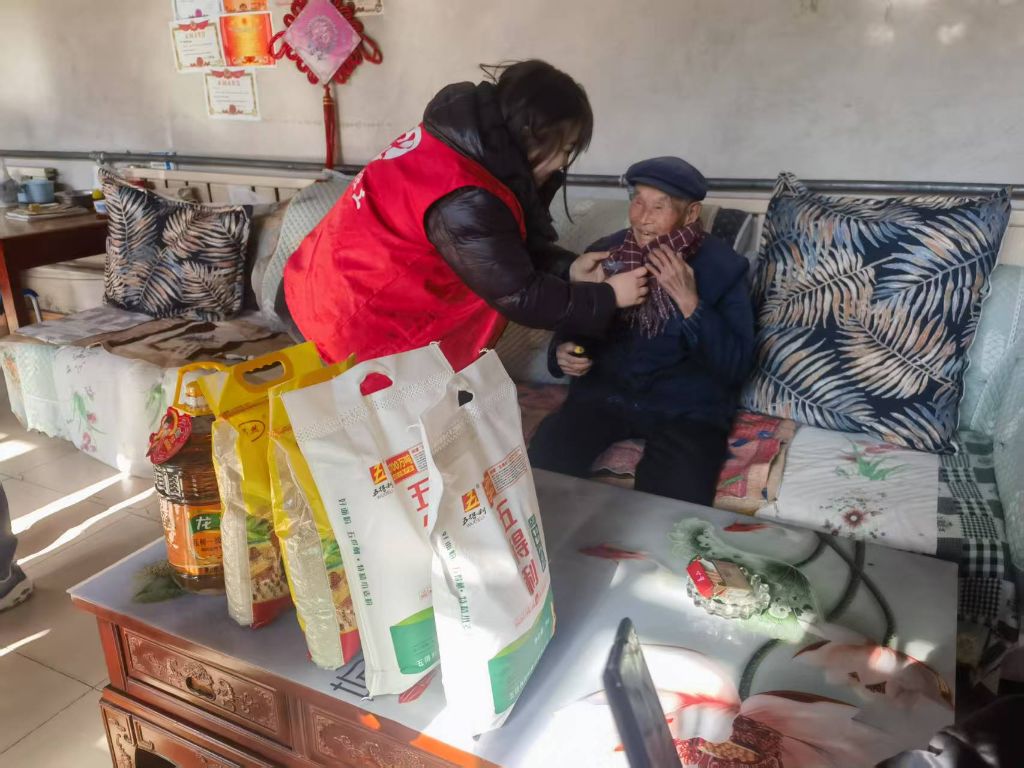 在走访中,工作人员和志愿者带着喜庆的春联、保暖的围巾以及米面油等物资,走进一位位退役军人的家中。每到一处,都与老兵们促膝长谈,忆往昔峥嵘,听他们讲述军旅生涯的热血故事。在抗美援朝老兵家中,社工为老人仔细戴上围巾,志愿者贴上寓意吉祥的春联,老人满是皱纹的脸上绽开笑容,直说“暖到心里”。