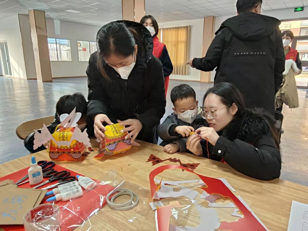 随后在社工和青年志愿者的帮助下,孩子们和家长互相帮助,共同协作,开启了一场愉快温馨的手工之旅。手工制作的过程考验的是细心与耐心,欢声笑语中,一件件手工作品逐渐成型。闪闪发亮的灯笼也象征着红火光明,社工在最后表达对孩子们的新年祝福,希望这个充满意义的手工作品可以陪伴孩子们度过温暖的新年。