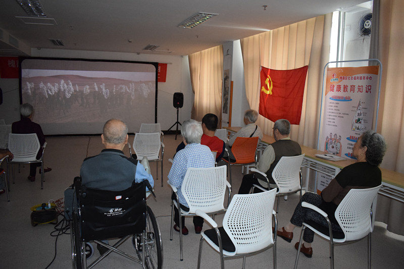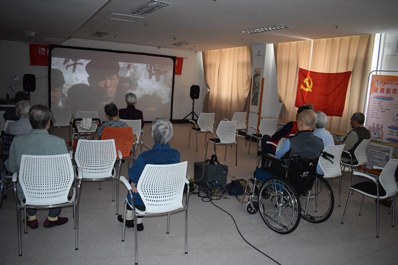 为弘扬十九大精神,加强党员的思想教育。年轻党员需砥砺前行,老党员也要加强党性教育,以更好的传承给年轻一代。9月21日,悦银龄养老社工项目组链接省广电资源,为住养的老党员在福利中心三楼老年大学活动室放映电影《焦裕禄》。