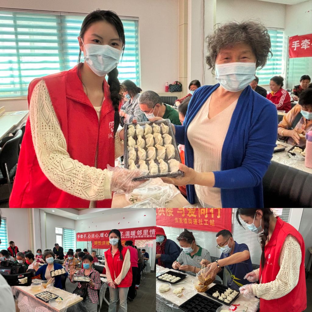 为丰富辖区居民群众文化生活,关爱社区居民,增强邻里之情,持续弘扬“尊老、敬老、爱老、助老”的中华民族传统文化。5月6日上午,洪家楼街道社工站联合洪家楼社区开展“小小饺子连情义 社区飘出幸福味 ”包水饺活动。