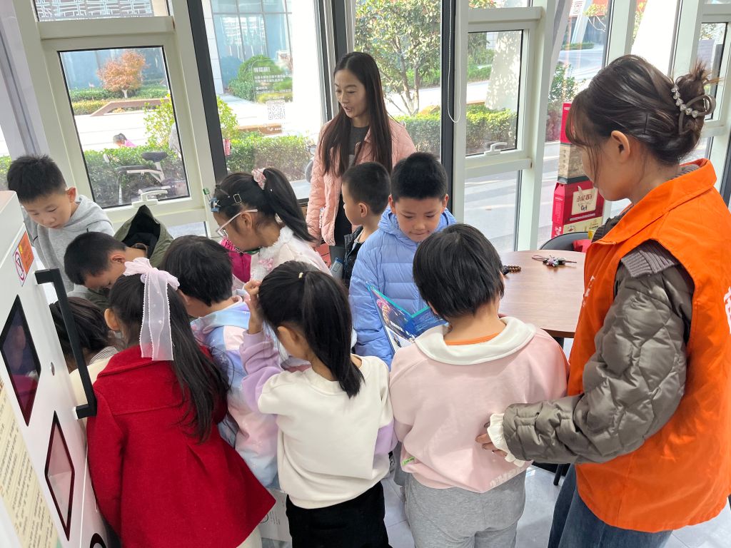 “这是电子图书借阅机,只需要把要借的书放上,就可以自动识别。”图书馆工作人员向孩子们介绍了图书馆里各种智能设备的使用方法以及图书管理员的工作职责,让大家直观地了解图书管理员的日常工作。孩子们在图书馆工作人员的带领下参观了图书馆,了解图书从采编、分类、编目到借阅整个流程。为确保实践效果,图书馆工作人员围绕图书分类排架知识、图书消杀机和电子图书借阅机使用方法等基础业务知识对“小小图书管理员”进行岗前培训。