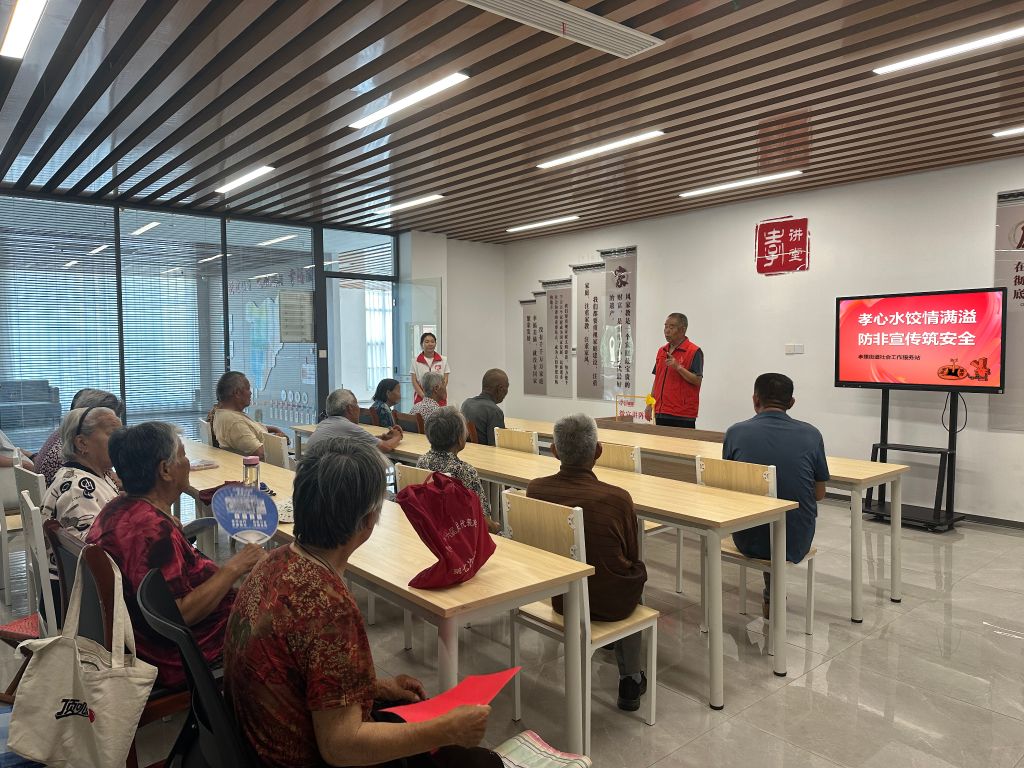 为弘扬尊老敬老的传统美德,增强老年人的风险意识和自我保护能力,营造和谐稳定的社区氛围,6月18日,孝里街道社工站联合孝文化艺术团开展“孝心水饺情满溢,防非宣传筑安全”活动,让老人们在享受美食的同时,也能增强自身的防范意识。