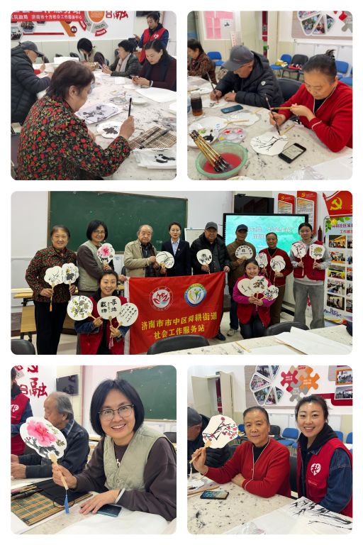 10月,社工站依托“敬老月”继续开展“老年智能手机学习小组”的第3、4次小组活动,主题分别为“如何使用出行APP”及“如何预约挂号”,进一步推动智慧养老的建设,帮助老年群体享受智慧出行的乐趣;社工积极链接到舜耕书画院等社区资源为辖区老年群体开展“手绘团扇”等敬老月系列活动。通过开展一场场精彩有趣的活动,不仅营造了尊老敬老爱老的良好氛围,还为辖区老年人提供了一个交流互动平台,增进了邻里间的深厚感情,让辖区老年人感受到来自社工站的温暖和关心。