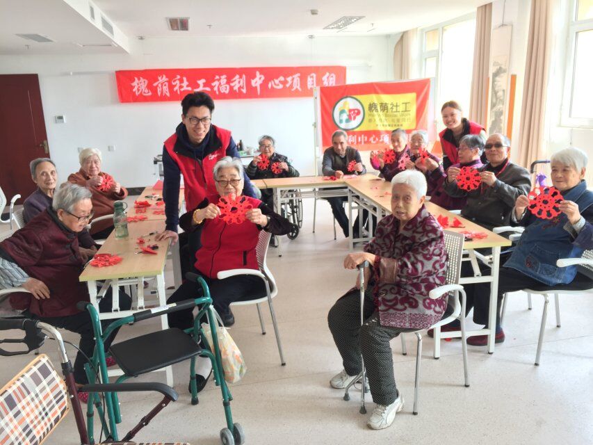 本次活动开始前,社工向老人介绍了剪纸的由来、用途及南北风俗与文化差异等。之后再由社工讲解剪纸的具体步骤和注意事项,老人们迫不及待开始剪自己的第一个作品。在活动开展过程中,老人之间相互帮助,相互交流;并且不断地向社工询问一些细节问题。很快,在社工的协助下,每位老人看到自己完成的作品后都非常开心。最后在温馨和谐的氛围中,社工和老人合影留念。