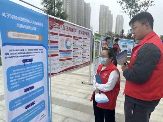 活动现场,通过悬挂条幅、发放法制宣传材料向广大群众宣传了《法律援助法》、《残疾人保障法》等相关助残、惠残的法律法规政策。现场还有律师面对面为残疾人提供专业的法律援助,近距离为残疾人送上贴心的法律服务,妇联的工作人员帮助残疾人解决日常生活问题以及提供正确解决方法,帮助残疾人增强法律意识以及如何维护自身的合法权益。