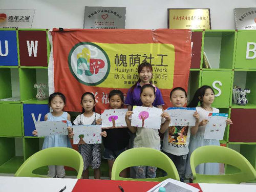由于疫情原因成员们到达活动室门口时,社工依次为他们登记体温,并向家长讲述活动时间和注意事项,签订服务协议。随后活动正式开始,社工引导成员自我介绍并设计用楚河汉界的游戏互相熟悉,加深了成员之间的了解。然后社工为小组成员分发诗歌,引导成员依次进行阅读、然后找出诗歌中的春天元素、最后通过诗歌中的描写画出春天的景象并摘抄上自己喜欢的诗句的活动安排。随后小组成员一起完成了团体契约,并将自己所画的春天的画和喜欢的诗句进行分享,成员虽然年纪小但是都积极地参与,认真地倾听。最后小组成员一起拿着自己的作品进行合影留念。