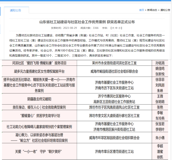 曹范街道社工站在山东省社工站建设与社区社会工作优秀案例大赛中获三等奖
