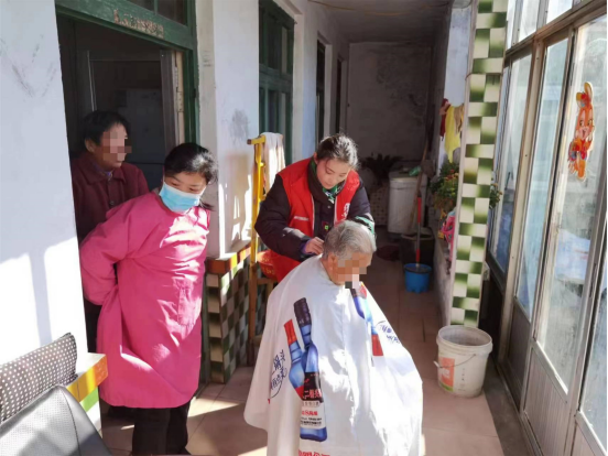 曹范街道社工为老人免费理发