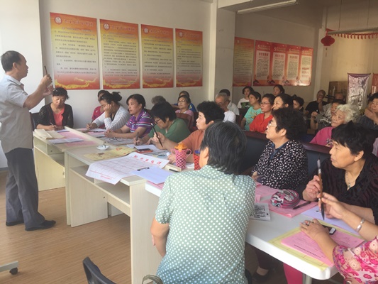 9月21日上午,“银龄伙伴”项目组第二次书法小组活动在盛福花园居委会活动室准时开展,本次活动邀请了蜗牛画室的李老师为组员讲解了握笔姿势、部分笔画的书写技巧。李老师说,“楷书由点画开始,基本点画包括:横、竖、撇、捺、钩、点六种。笔画中只是一笔简单的横就有有露锋起笔横和藏锋起笔横。”老师讲得好,组员学的认真,大家时而凝神屏气倾听,时而落笔记录。还有几位组员不停地拍照,说要回家后再仔细学习。李老师耐心地讲解和示范每一个姿势和笔画的步骤,回答组员的问题,看着组员动手写,及时纠正,并鼓励他们坚持下去。