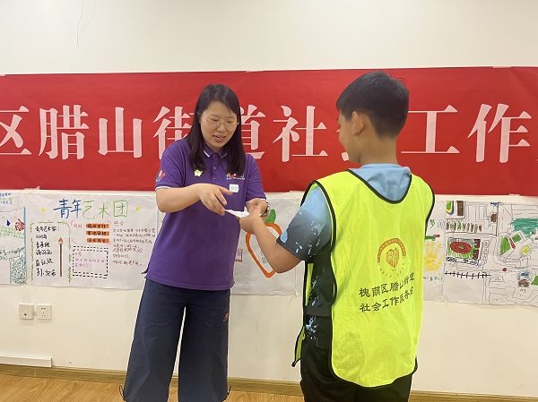 社工为营员设计情景,通过参与式体验,进一步增强营员的助人意识,感受助人过程。
