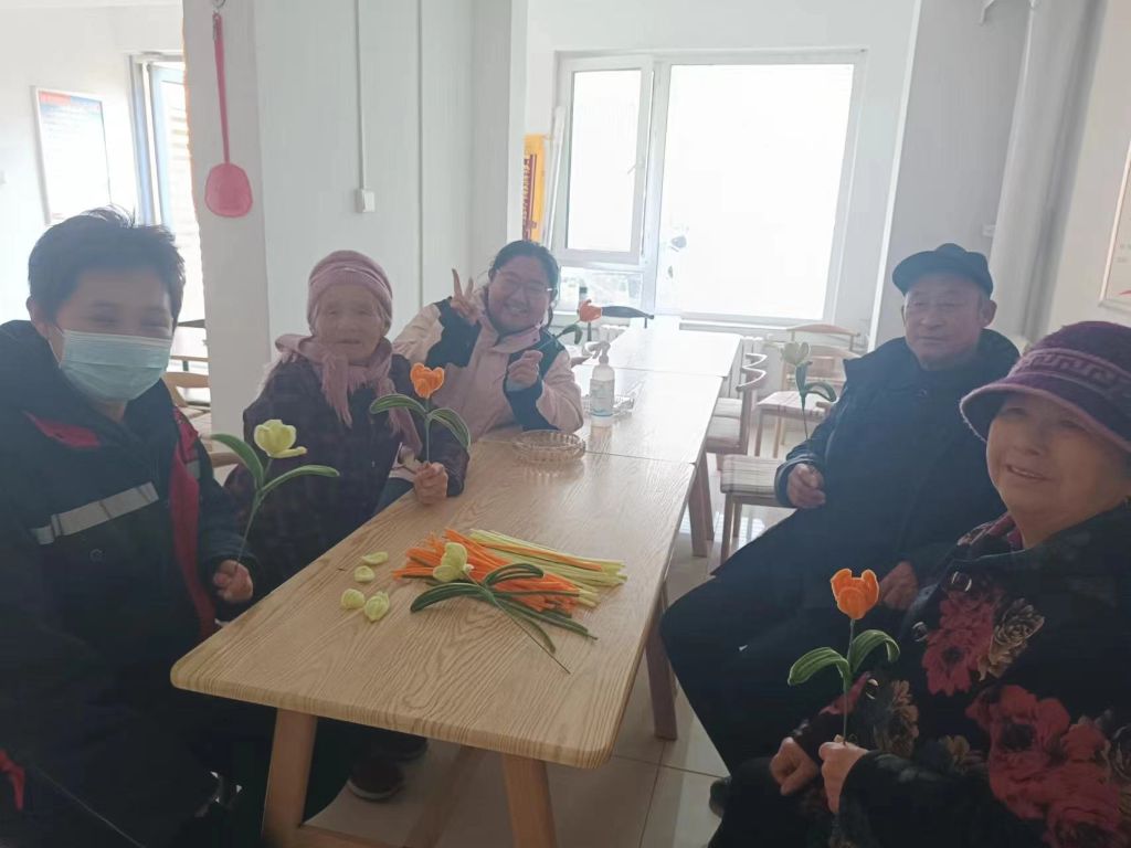 活动现场,社工和志愿者们为参与活动的姐妹们准备了各式各样的手工制作DIY材料,在介绍完康乃馨花语和手工制作技巧后,大家很快便沉浸到创作的快乐中,迫不及待地动起手来。“看着挺简单的,上手还挺难呢。”参与者笑着寻求社工和志愿者的帮助,在社工的耐心讲解下,慢慢的一朵朵漂亮的“康乃馨”盛开在活动室的每个角落,为三月份提供了一份色彩,大家的脸上都散发着灿烂的笑容。“咱这个活动太好玩了,原来做手工都是为了孩子在学校的作业,都是带着任务去做的,这次可算是为了自己,好久没这么放松了。”参与者说道。