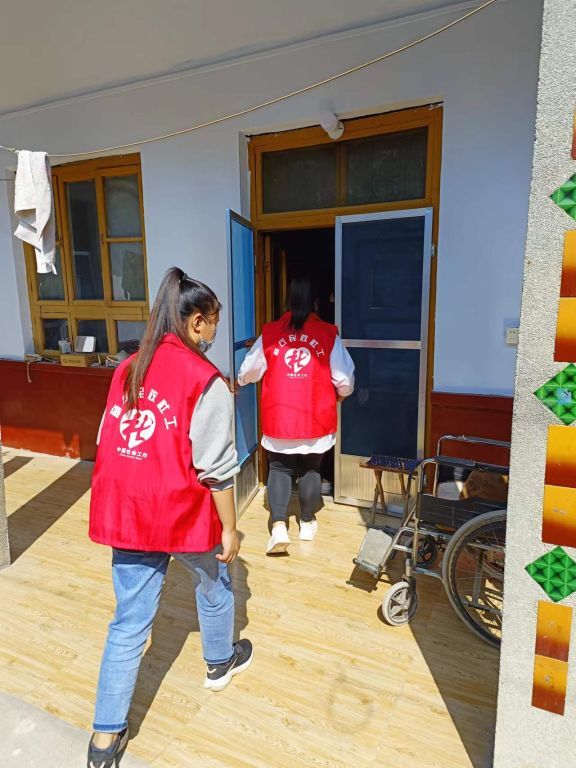 走访中,社工与残疾人家属亲切交谈,嘘寒问暖。了解他们最近生活状况、身体情况及服药情况,倾听他们的所需所想,并对每位残疾人的情况做好详细记录,以便后续更好的跟进。我们在入户探视中来到徐家村一户重度残疾人家中,从残疾人家属王阿姨了解到自己的老伴张某常年卧床不起,而孩子在外地打工很少回家,由于自己年迈照顾重病老伴有些困难,社工通过前期学习的养老护理知识协助老人更换被褥,并耐心讲解卧床残疾人相关护理经验。