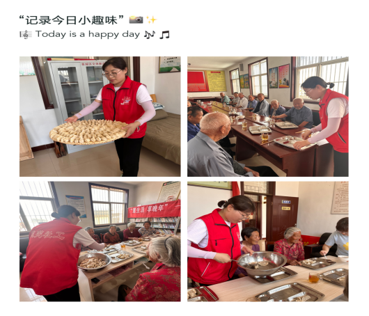 活动结束后,志愿者们将饭菜端到老人面前,老人们吃着热乎的水饺,脸上露出幸福的微笑,在这里老人们既能暖胃又可以暖心。