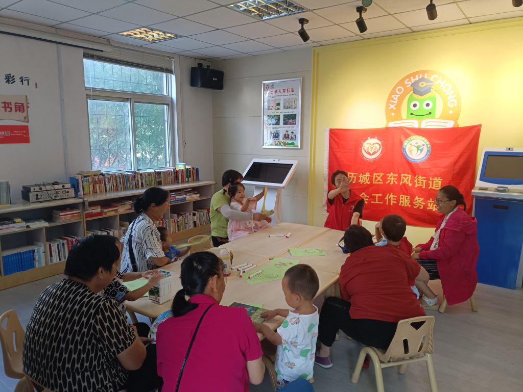 为提升辖区老年人的育儿意识、增强老年人的养育能力、促进辖区儿童的发展。东风街道社工站联合七里堡南北社区共同开展了“我爱我家”隔代养育能力提升计划的第4期活动——亲子互动式阅读。旨在继续为老人们做好绘本讲读示范,帮助老人们掌握绘本的讲读技巧及亲子互动方法。