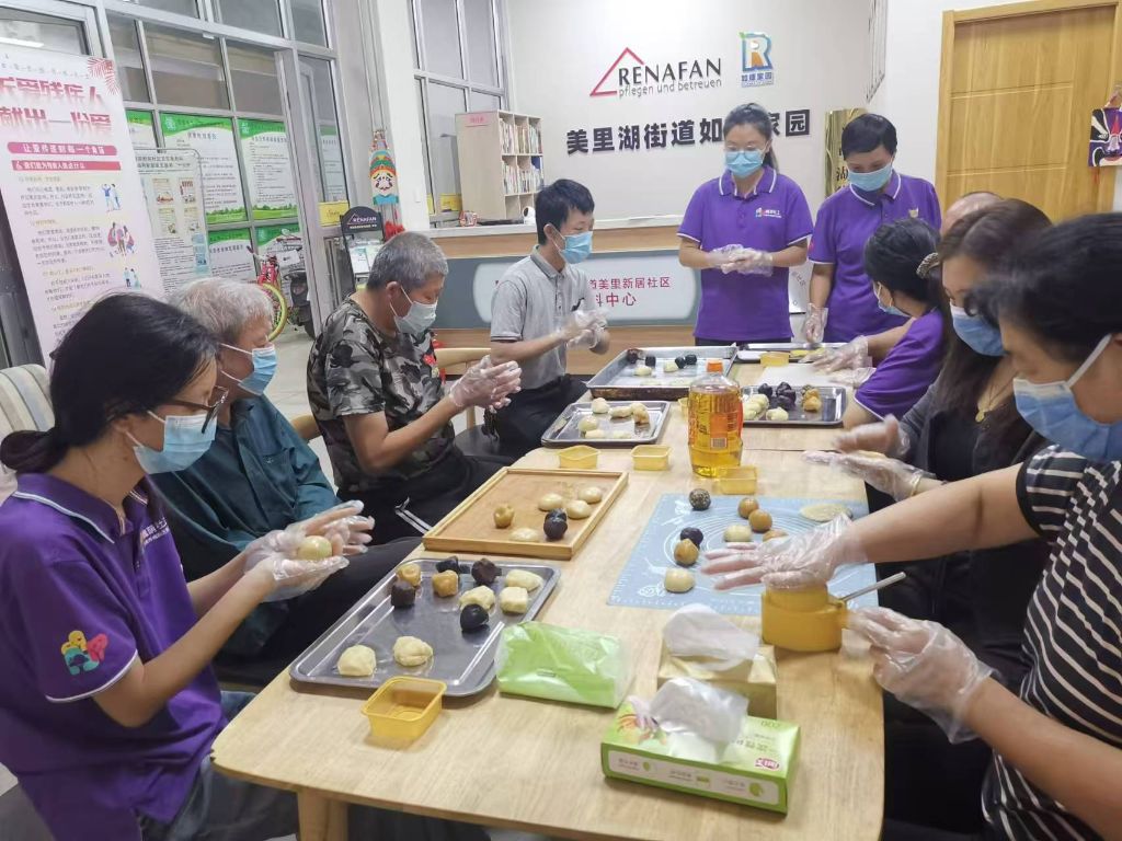活动开始,社会工作者先向大家介绍中秋节的节日背景和习俗,增强大家的文化自豪感和自信心。然后便开始详细介绍月饼的制作方法,残疾人们也听得很认真。在制作过程中,他们充分展现自己的能力,在失败的基础上总结经验,不断克服困难,制作出一个又一个完美的月饼。制作过程中馅料香气扑鼻,让人忍不住流口水。在成功脱模的那一刻,每个人的脸上都洋溢着满满的自豪感。