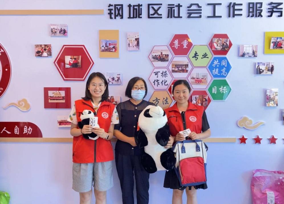 “情暖钢城 为爱启航”微心愿系列活动认领仪式时,部分心愿礼物没有送到,因此第二期微心愿的爱心人士将心愿礼物陆续送达到社工总站。这次送达礼物的魏老师,认领的是一位小女孩的熊猫娃娃,魏老师除了购买指定心愿礼物外还为女孩购买了熊猫元素的发卡及学习用品。在与社工的沟通交流中,肯定了社工微心愿活动的开展,希望能够有更多的机会参与社会工作活动中。魏老师的支持与肯定也是激励我们开拓思路、不断进取的动力,我们将持续开展需求调研,为辖区的儿童提供更多优质服务。