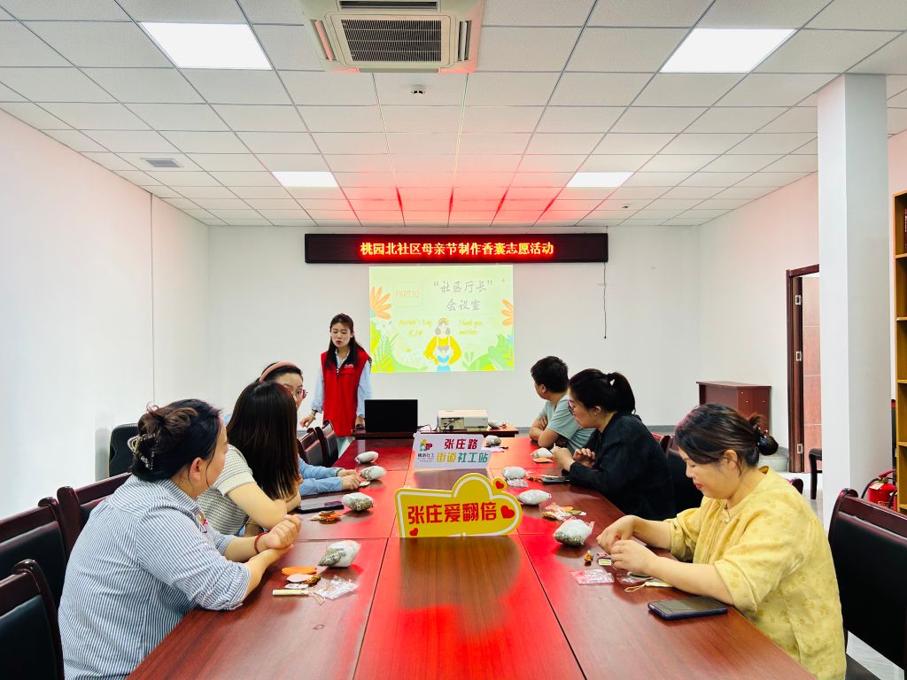 在香囊制作环节中,社工带领社区工作者在温馨和谐的氛围中一起亲手制作艾草香囊,体验传统文化的魅力。制作香囊的过程不仅仅是一个简单的手工活动,它还成为了社区成员之间相互交流、增进感情的桥梁。在香囊的缝制、填充和装饰过程中,社区工作者们展现出了团队合作的精神,他们互相协作,互帮互助,共同克服了制作中遇到的困难,也使得每个香囊作品都得以完成。通过亲手制作香囊,社区工作者们不仅享受到了手工艺带来的乐趣,更是在专注细致的手工制作过程中找到了一种心灵的宁静。