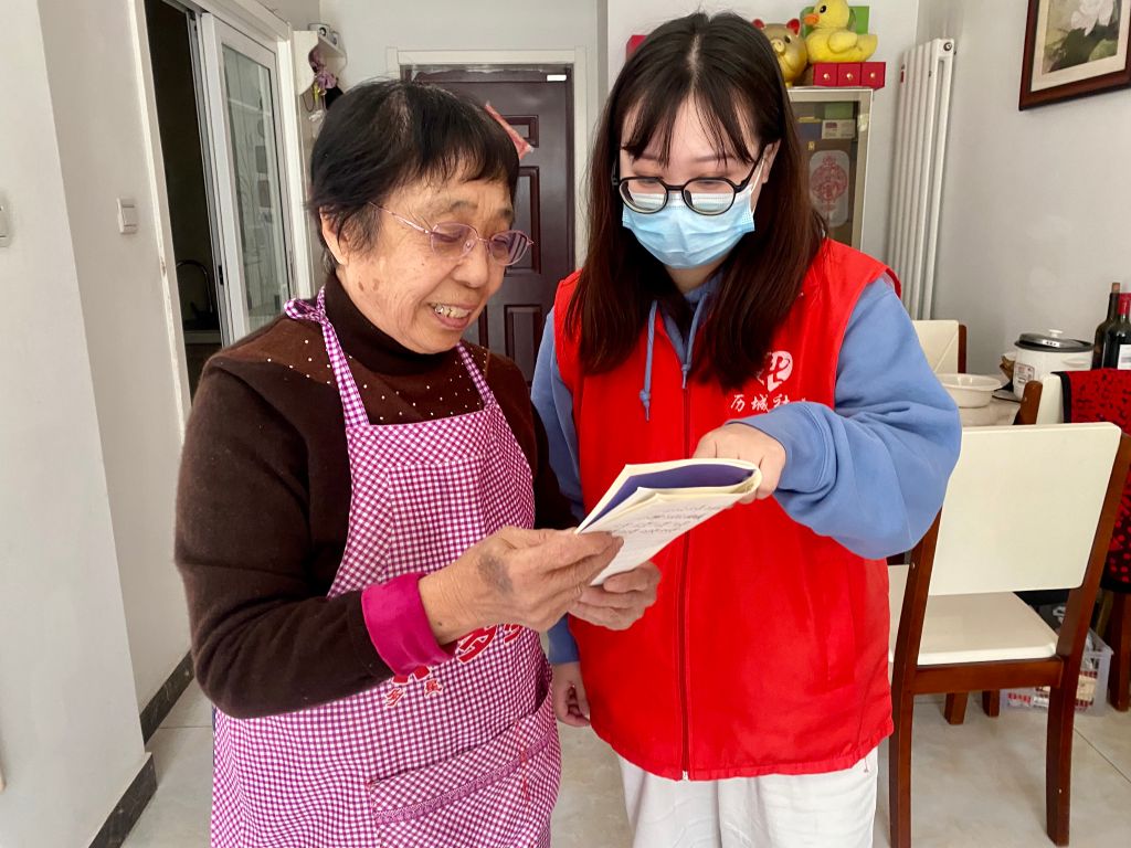 对于腿脚不方便出门的老人,社工提前联系开展上门送眼镜服务。82岁的苏奶奶拿到眼镜之后迫不及待要戴上看看效果,看到笔记本上一个个字清晰起来,老人高兴地说:“我的老花镜是十多年前买的,现在看个电视都起不了大作用,这回总算能看清楚了,谢谢社工啦!”