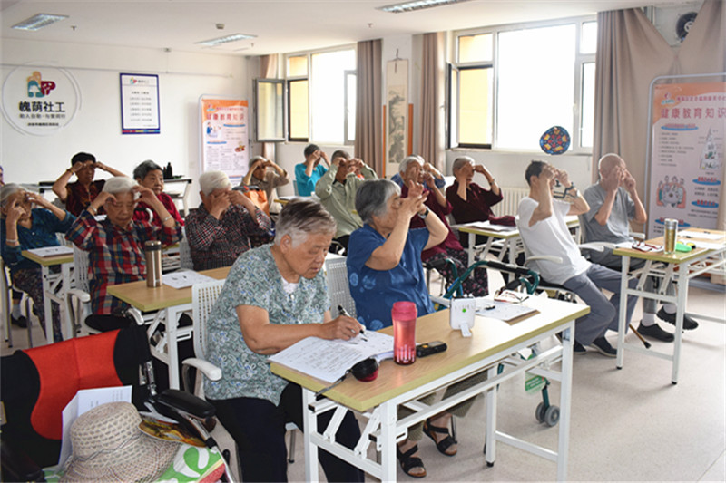 社工通过调研发现住养老人大都非常看重对于视力的保护,许多老人告诉社工自己有每天做眼保健操的习惯,但是社工仔细观察发现老人们的眼保健操都很不标准,对于相应穴位的位置也不了解。5月24日,众诚悦银龄养老社工项目组社工在福利中心三楼老年大学开展了“为革命,保护视力”趣味养生小课堂活动,希望使老人可以做好眼保健操、正确保护视力。