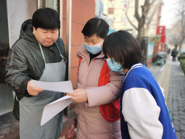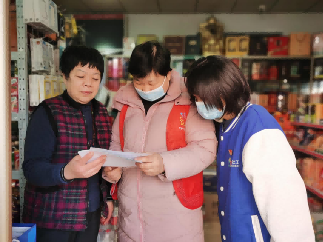 (社工与志愿者一起对居民进行宣传)