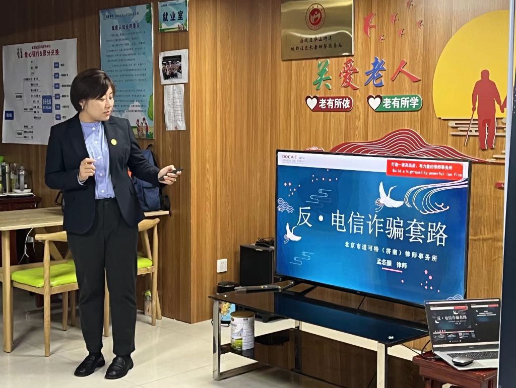 为弘扬中华民族尊老、敬老、养老、助老的社会风尚,提高老年人的防骗、识骗能力,11月9日,华山街道社工站和山东乐养健康服务有限公司链接道可特济南律师事务所在城郡、观华社区日间照料中心为老年群体上了一节生动的法治课堂。