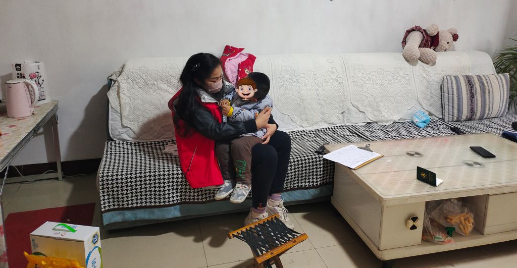 在前期调研中,口镇街道社工站了解到此次探访的服务对象是一位3岁的多重残疾儿童,一直不会站立,不会走路,服务对象的爸爸妈妈为了给孩子筹集做康复治疗的费用,常年在外地打工。服务对象的爷爷因意外去世,家里只有服务对象的奶奶长期照料服务对象的生活,奶奶年迈,生理、心理面临很大的压力。社工耐心倾听奶奶诉说,对奶奶诉说的困难和问题一一记录,给奶奶足够的理解和宽容,让奶奶有了倾诉对象。